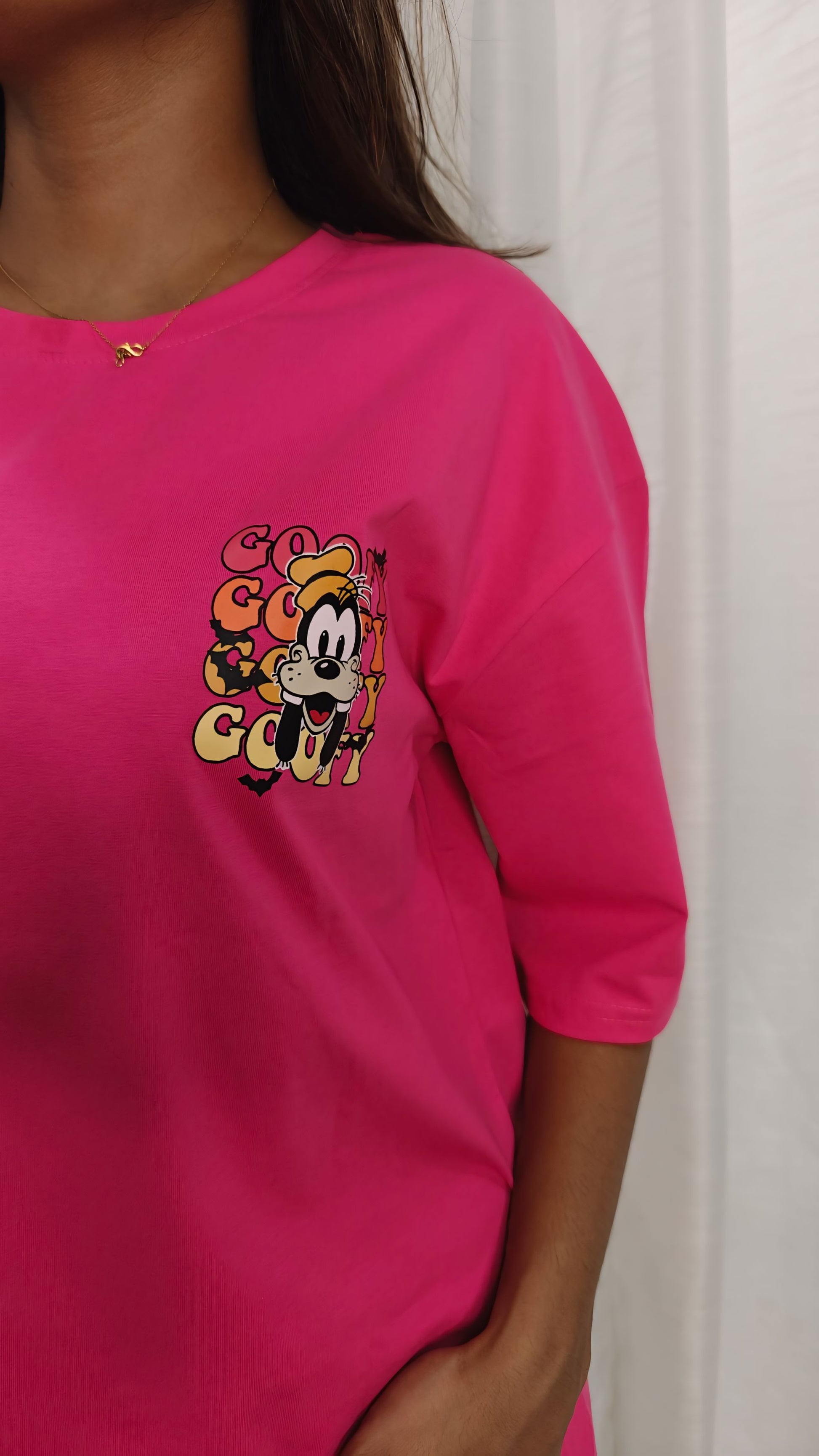 Introducing Disney Goofy Friends Oversize Bundle (Black + Pink) for Disney fans. These shirts feature an oversized fit for ultimate comfort. Made with high-quality materials, they showcase your love for Goofy and his friends. Get yours now and be the envy of all Disney enthusiasts.