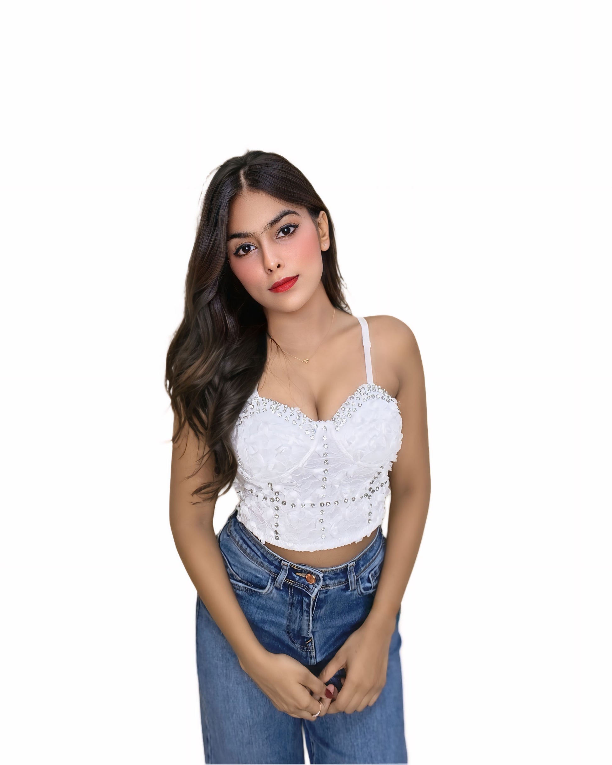 Captivating as you are with the Steeve Pearl Detail Statement Top With White Feathers. This exquisite piece is a symphony of elegance and whimsy, designed to turn heads and elevate your style to new heights. The pristine white top serves as a canvas for delicate pearl accents that shimmer with understated luxury. Cascading white feathers add a touch of ethereal beauty, creating a sense of movement and lightness. Whether you're attending a special occasion or simply want to add a touch of glamour to your everyday look, this statement top is sure to make you feel confident and radiant.