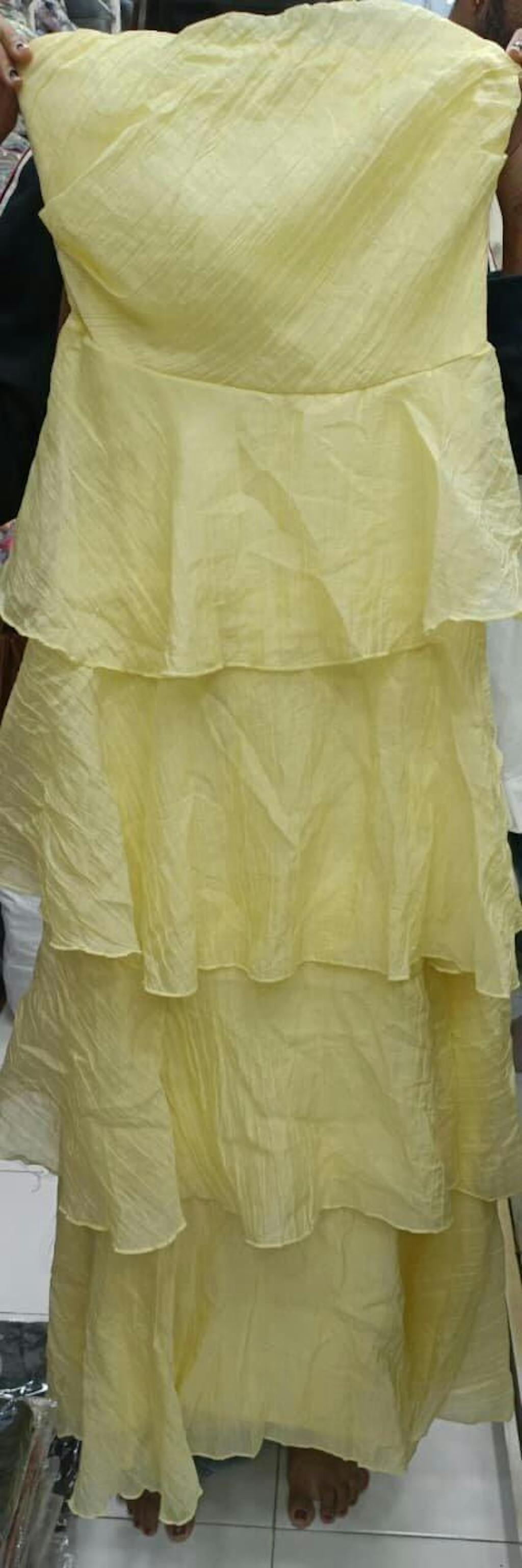 yellow tiered maxi dress, crafted for effortless style and all-day comfort. Designed in a flattering strapless silhouette, this flowy piece features soft layered ruffles that move beautifully with every step.